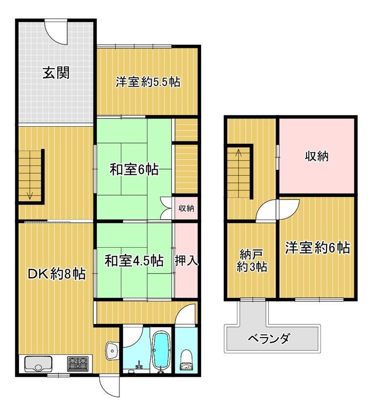 ●間取り:4DK +S (2階建て)