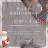 年末年始の休業のお知らせ